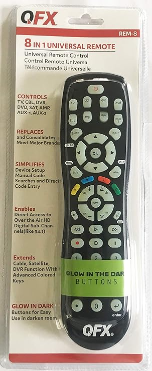 Amazon Com Qfx 8 In 1 Universal Remote With Glow In The Dark Buttons Rem 8 Electronics